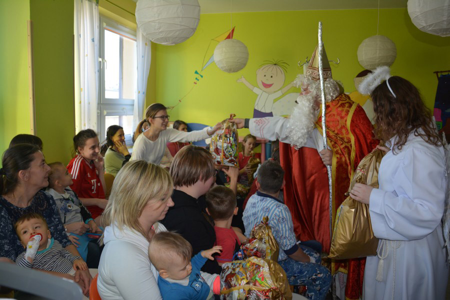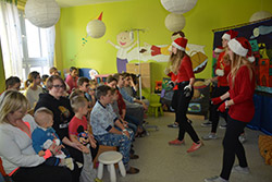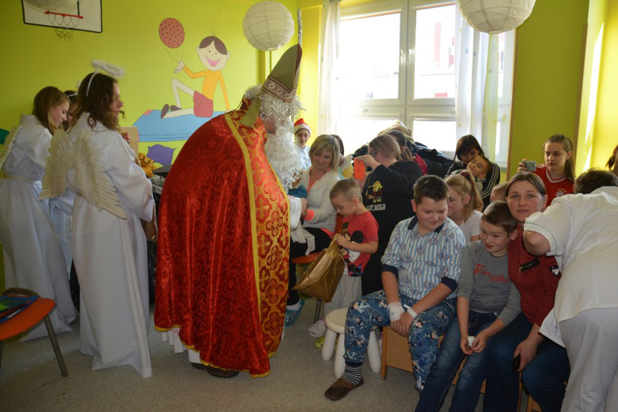 Dzieci hospitalizowane na Oddziałach: Chorób dzieci i Chirurgii dziecięcej miały możliwość, wspólnie z rodzicami, posłuchać bajki o przygodach Mikołaja, piosenek o nim, a na koniec otrzymać paczki mikołajowe. Uśmiechom i radości z obu stron nie było końca.