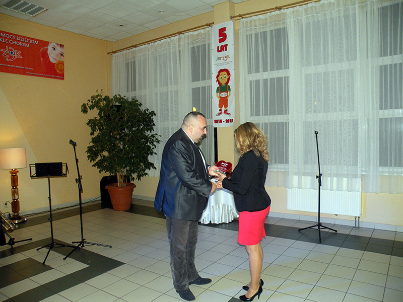 Właśnie dla nich w dniu 04.11.2011 r. nasza Fundacja zorganizowała w Sali Bankietowej Hotelu Gromada małe przyjęcie, połączone z rozdaniem wyróżnień i nagród głównych Rubinowego Jerzyka 2011 w dwóch kategoriach: osoba i firma. O godzinie 19.00 zaproszeni goście w komplecie stawili się w specjalnie na tą uroczystość udekorowanej sali i z niecierpliwością czekali na to co nastąpi. Zapraszając naszych nagrodzonych gości staraliśmy się nie informować ich o tym, że to właśnie oni otrzymali wyróżnienie czy nagrodę, chcąc zrobić im miłą niespodziankę. W wielu przypadkach zaskoczenie nagrodzonych było ogromne, nawet do tego stopnia, że pojawiały się łzy szczęścia czy też łamał im się głos. My również byliśmy bardzo wzruszeni i było nam bardzo miło, że w trakcie mijającego roku mogliśmy liczyć na tak duże ich wsparcie.